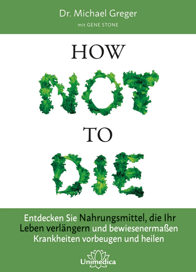 Dieses Buch von Dr. Michael Greger erklärt umfassend was eine gesunde Ernährung ausmacht. Ausgangslage des Buches ist die Erkenntnis, dass die meisten Erkrankungen und frühzeitigen Todesfälle sich durch einfache Änderungen der eigenen Lebens- und Ernährungsweise verhindern lassen. Wenn die Grundbedingungen stimmen, kann sich der menschliche Körper selbst heilen.